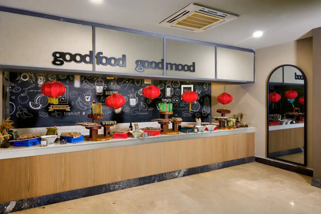 - De la pension complète (petit déjeuner, déjeuner et dîner) servie sous forme de buffet au restaurant principal.