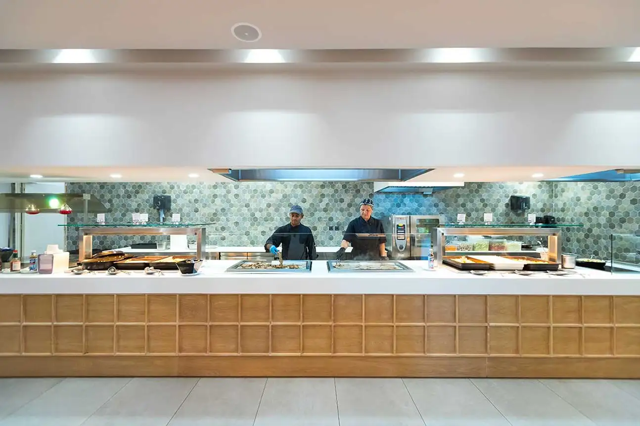 • Déjeuner de 12h30 à 14h00 > buffet ou au restaurant à thème méditerranéen (sur réservation).