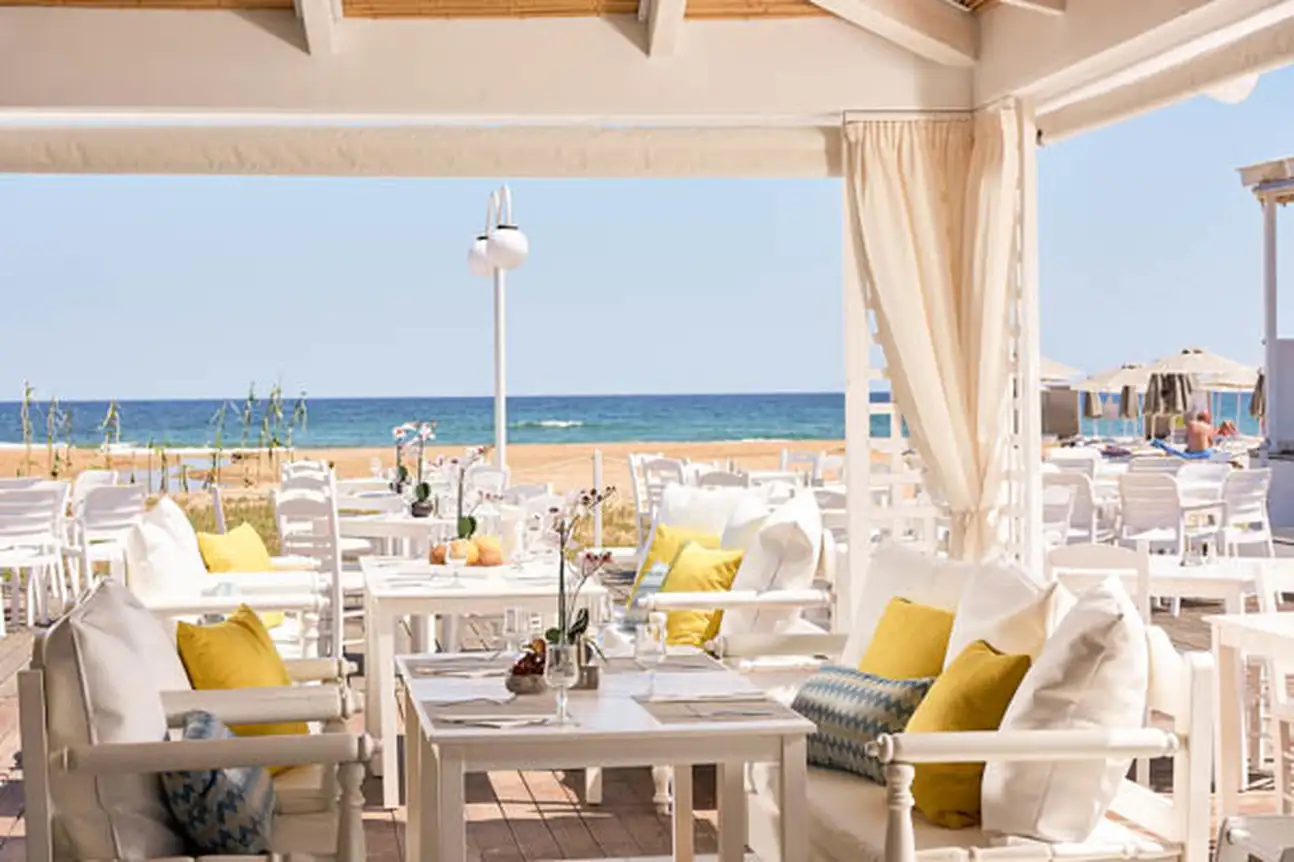 - Restaurant Kyma : restaurant de plage sous forme de buffet (cuisine grecque, menu fixe) : 19h-21h30 3 soirs par semaine sur réservation la veille.*