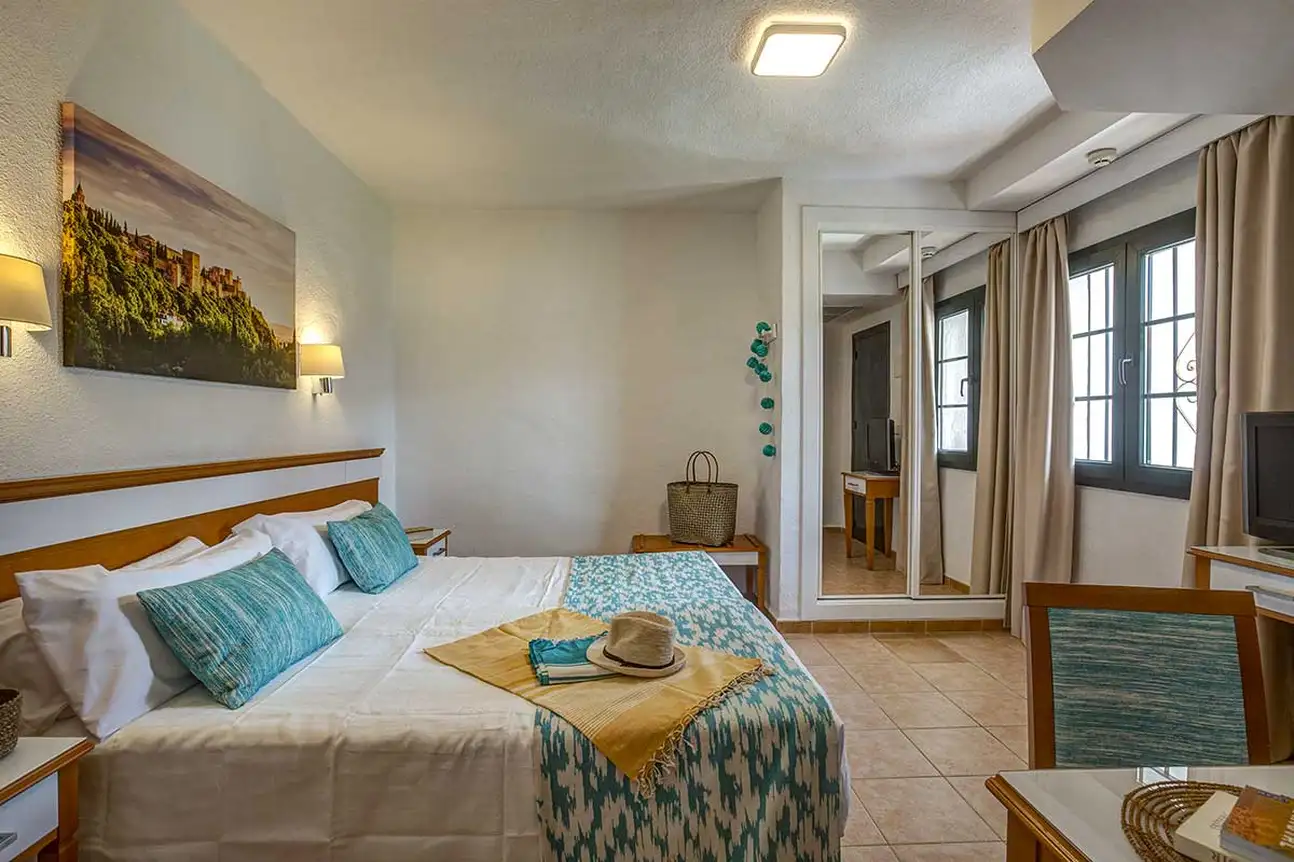 Le club dispose de 204 chambres toutes réservées au Club Marmara, réparties dans des édifices de 2 étages maximum au charme typique andalou. L'hôtel est divisé en deux partie par une petite rue empruntée par les riverains avec d'un côté la partie village comprenant les chambres, le restaurant, la réception et les zones communes et de l'autre côté de la rue, sa partie avec piscine, bar, sports et animations située en contre-bas d'une bretelle donnant accès à l'AP7, quatre voies desservant les stations balnéaires de la Costa del Sol. La vue des vacanciers n'est pas obstruée par cet axe de circulation et le Pueblo Andaluz est doté de bonnes infrastructures contre les éventuelles nuisances sonores.