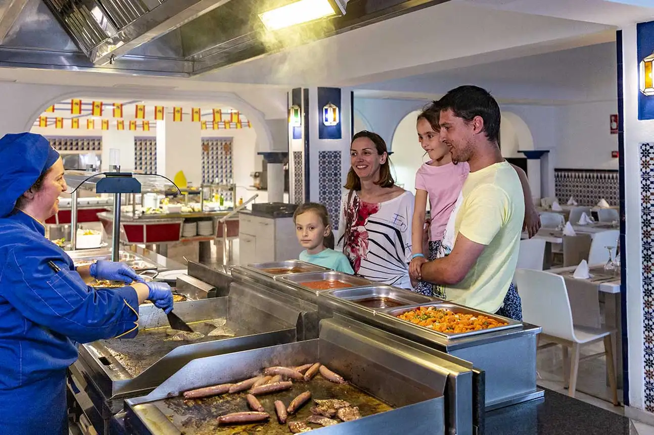 Buffets à thèmes plusieurs fois par semaine. Repas buffet varié à volonté : cuisine internationale et locale, buffet à thème, show cooking, snack…