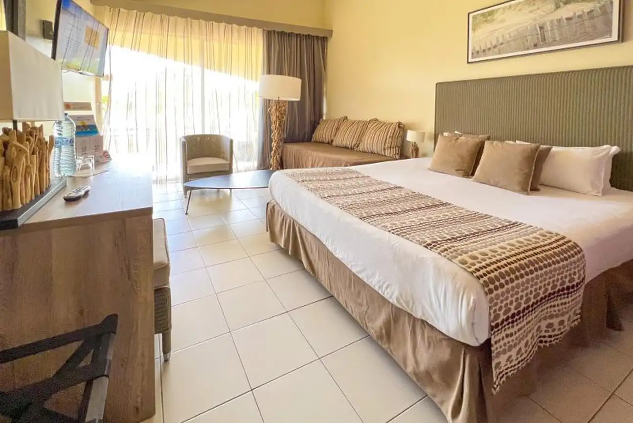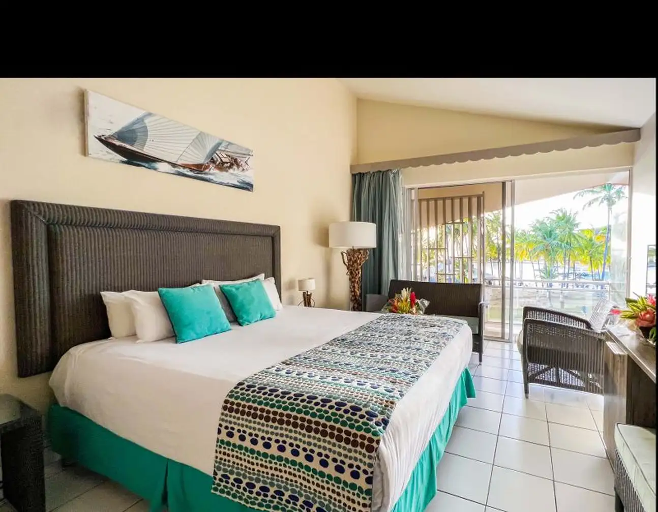 L'hôtel Fleur d'Epée propose 187 chambres spacieuses (environ 25m²) réparties dans trois bâtiments de 2 étages. Climatisées, elles arborent une décoration typique des Caraïbes aux couleurs chaudes.