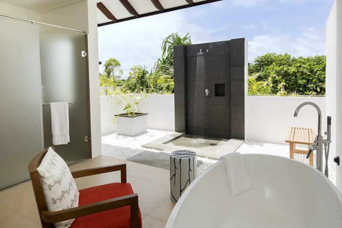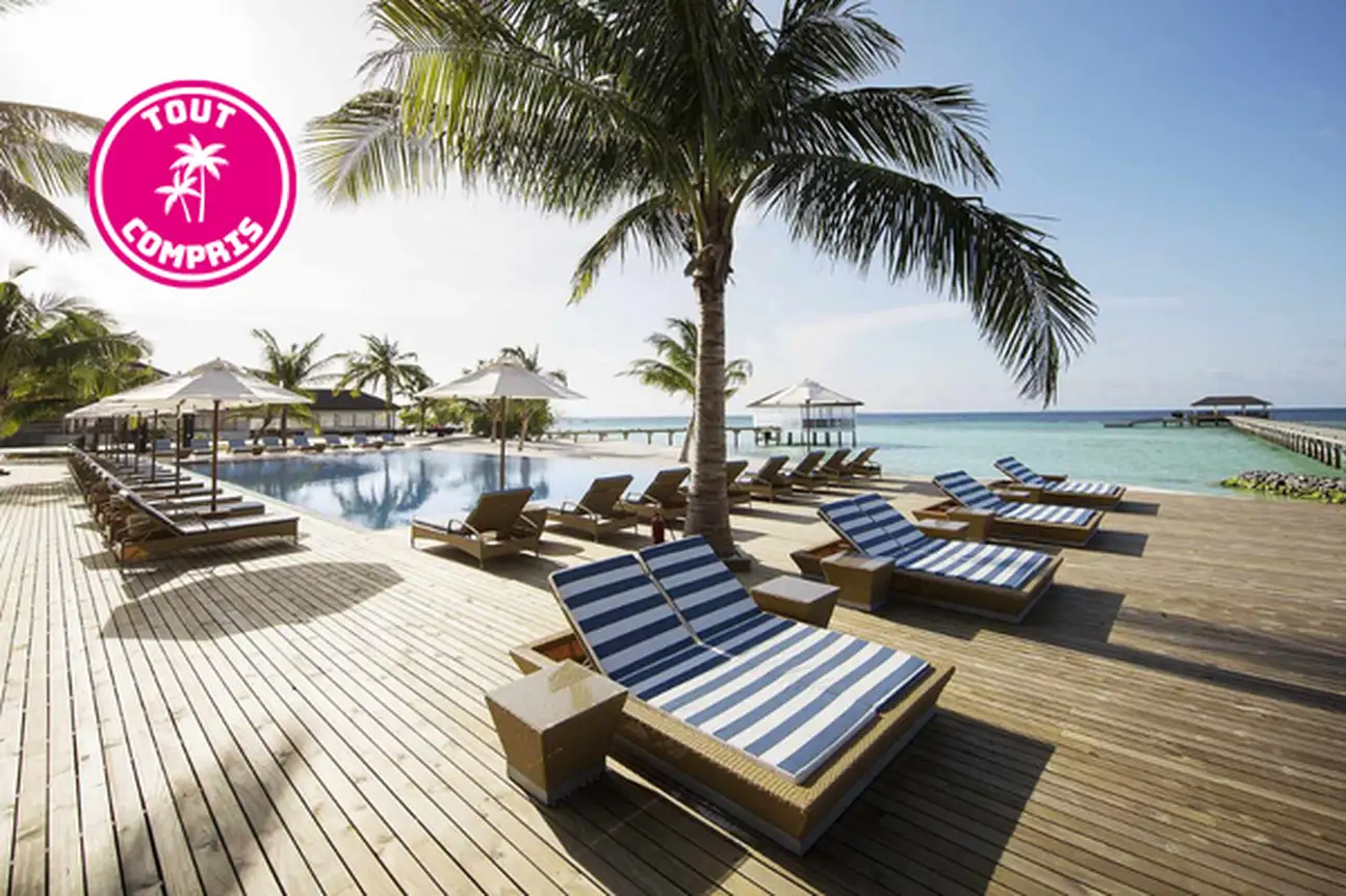 Le design de l’hôtel combine des éléments contemporains avec une touche maldivienne traditionnelle, créant une atmosphère élégante et accueillante.