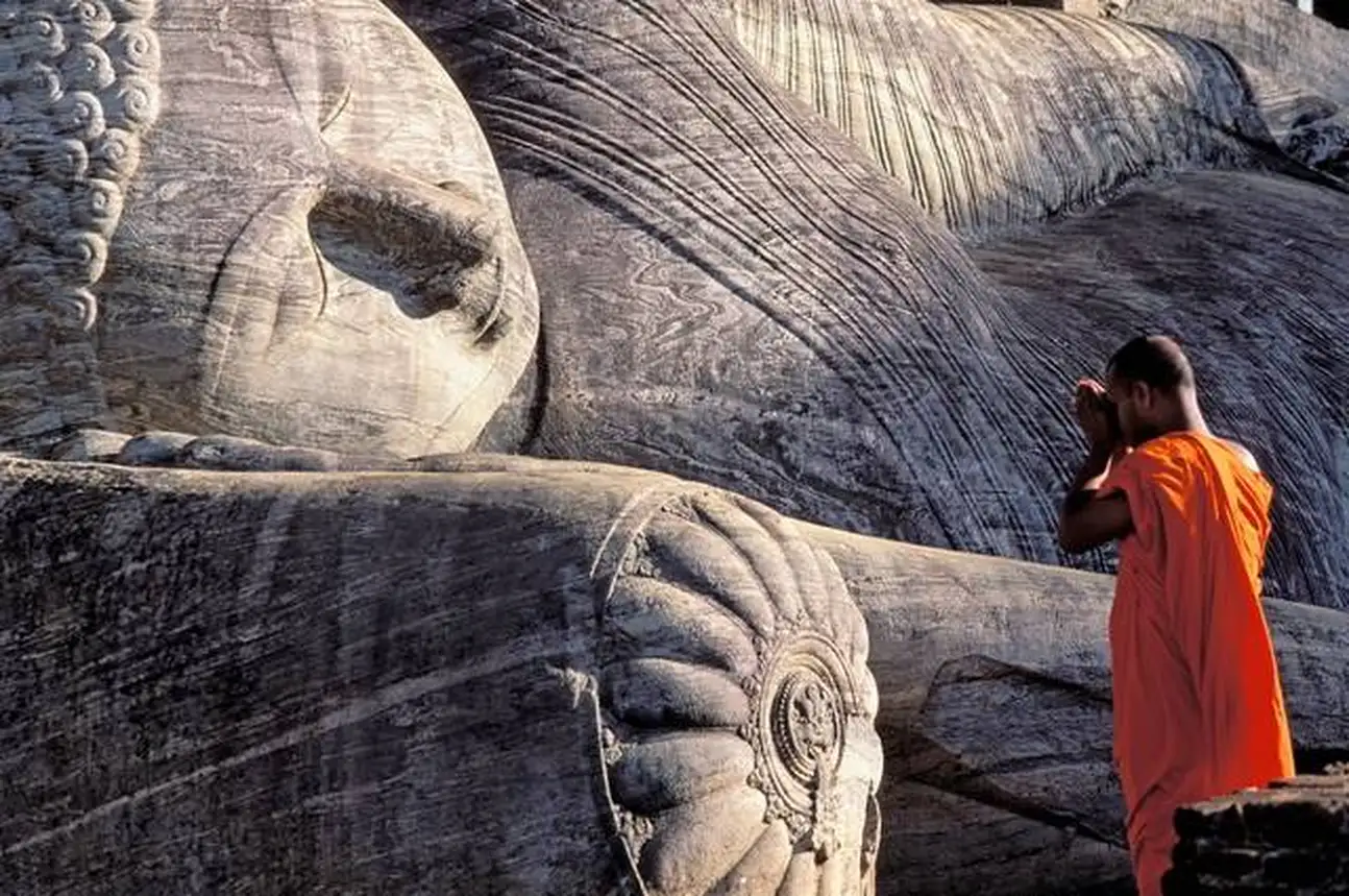 Ascension du spectaculaire Rocher du Lion (UNESCO), où subsistent les ruines de la citadelle dont le roi Kasyapa fit sa capitale au 5e s. ainsi que la galerie des Demoiselles, fresques sensuelles et remarquablement conservées. Déjeuner typique, dans une jolie maison familiale face aux rizières, puis route pour Polonnaruwa (UNESCO) et découverte des nombreux vestiges de cette ancienne capitale de l'île du 11e au 13e s., dont l'extraordinaire ensemble du Gal Vihara, aux quatre statues de Bouddha sculptées dans la pierre (visite du site à vélo pour ceux qui le souhaitent - véhicule à disposition pour les autres). (P.déj+Déj+Dîn)