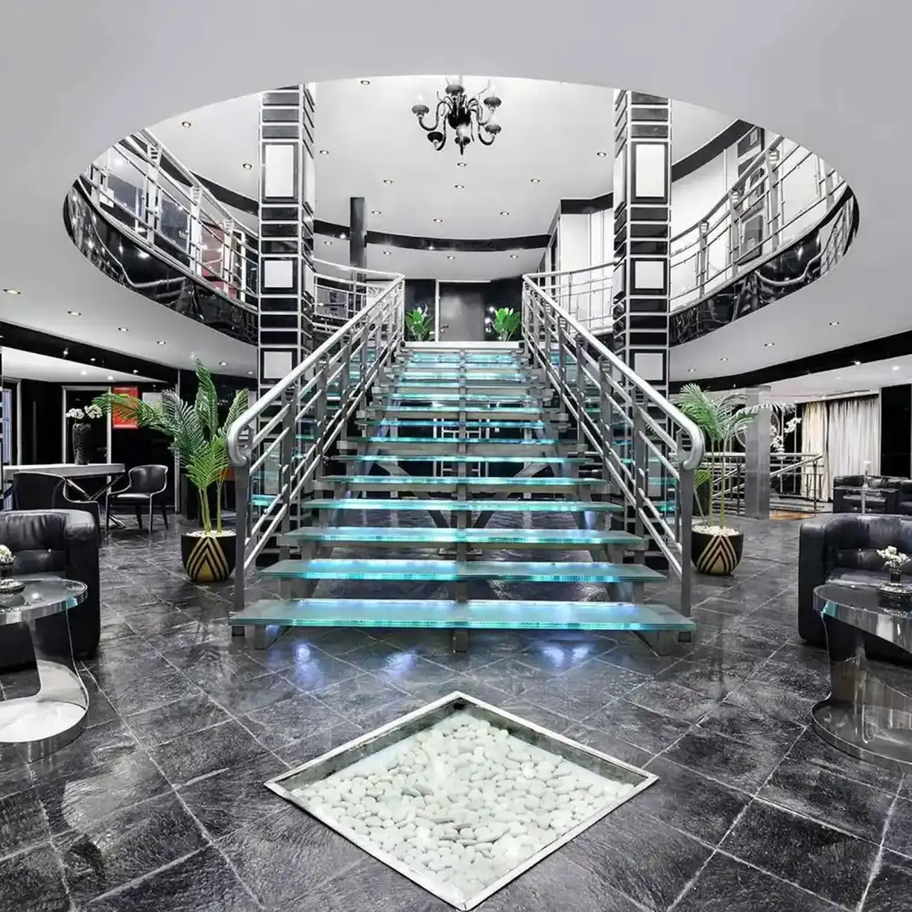 Les 66 cabines et suites confortables disposent d’une climatisation individuelle, télévision, grande baie vitrée, salle de bains avec douche ou baignoire. Les suites disposent également d’un sauna individuel.