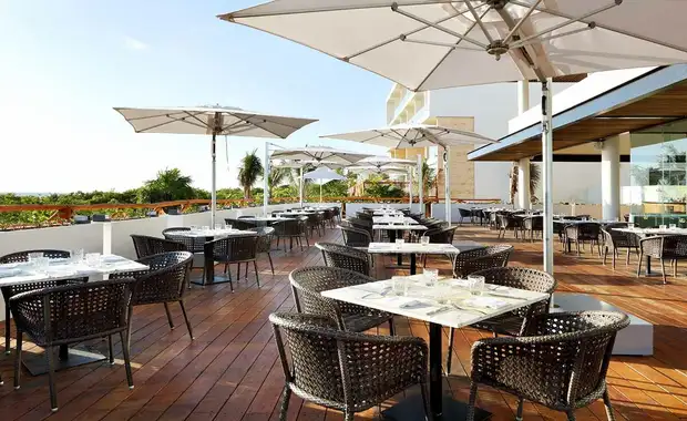 Restaurant Isla Blanca (cuisine internationale, sous forme de buffets, avec show cooking), Poseidon (produits de la mer, show cooking), 6 restaurants à la carte (italien, steak-house, mexicain, japonais, asiatique, indien) pour le dîner, sur réservation. Payant, sur réservation : "Chic Cabaret " avec dîner-spectacle, réservé aux adultes. 19 bars dont bars à la piscine et sur la plage. Tenue correcte exigée. Plats végétariens ou sans gluten sur demande.