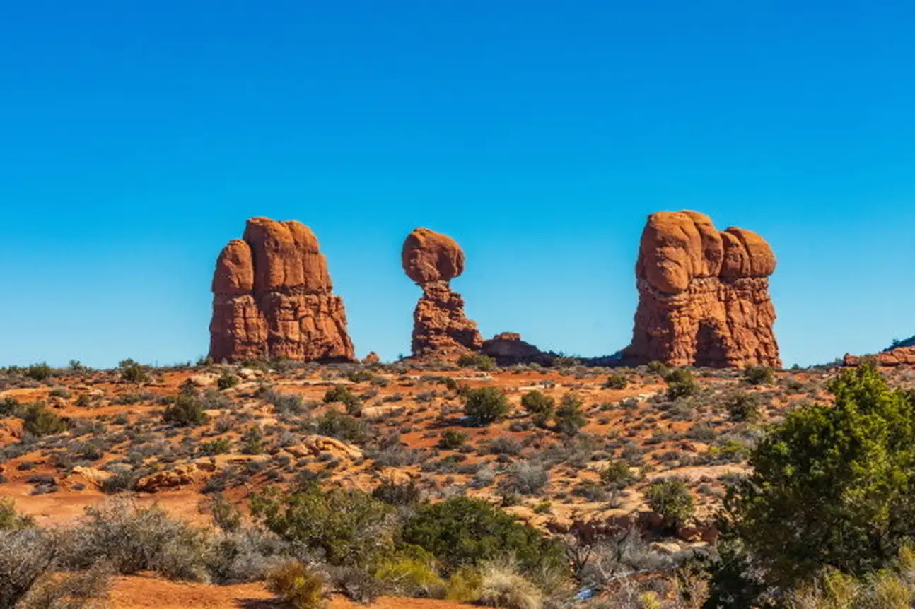 Découverte de Arches qui abrite d'étranges formations rocheuses que la nature s'est amusée à modeler en de gigantesques arches naturelles d'une belle couleur ocre-rouge. Avec le temps, certaines se sont pétrifiées tandis que d'autres ont été sculptées et érodées par l'eau, le soleil, le gel et le vent. Le parc s'étend sur près de 300 kilomètres et regroupe 88 monuments de pierre, classés site national depuis 1971. Déjeuner panier repas en cours de visite. Continuation vers le nord. Diner libre (ou inclus en pension complète) et nuit dans la région de Vernal.