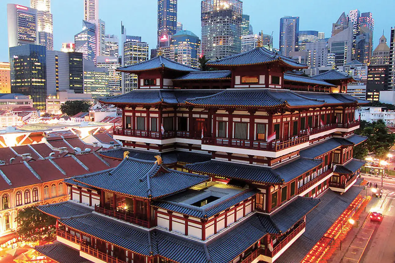 Visite de Singapour : civic district, le coeur colonial du quartier du Padang avec son terrain de cricket de 1830 ; arrêt photo au Merlion, statue géante mi-lion, mi-poisson ; Chinatown et le temple rouge et or abritant la relique d'une dent de Bouddha. Déjeuner de dim sum au Red House Seafood sur la promenade du front de mer de Marina Bay ou au Yam Cha (ou similaires) au coeur du quartier chinois. Montée au Sands SkyPark au sommet de l'un des édifices emblématiques de la ville. Visite du Jardin botanique, classé UNESCO, et de sa fantastique collection d'orchidées puis de Gardens by the Bay où sont reconstitués des jardins du monde entier. Les Super Trees recouverts de cellules photovoltaïques s'illuminent au soleil couchant créant une atmosphère futuriste unique au monde. Transfert à l'aéroport de Singapour. Dîner nuit à bord.