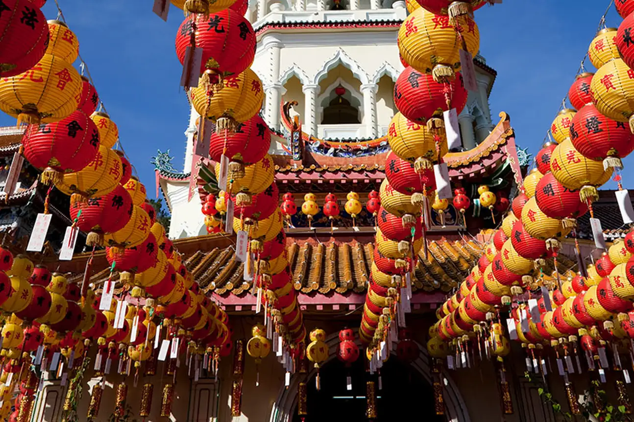 Découverte de George Town ou Penang, ancien port franc et comptoir britannique sur la route du thé puis de l'opium, paradis gastronomique et ville dotée d'une vie urbaine et multiculturelle animée. Classée UNESCO, la ville abrite plusieurs merveilles architecturales : des temples bouddhistes et hindous, des mosquées, des maisons de style peranakan, des bâtiments coloniaux et les Clan jetties, ancien quartier de pêcheurs composé de 7 jetées pour 7 clans différents. Balade dans Little India et sur le sentier de l'Harmonie puis visite de Khoo Kongsi, le plus grand temple du pays dédié aux ancêtres d'un même clan familial. Arrêt au marché local Chowrasta market. Dégustation dans un fournil de café local et de pain bengali, et déjeuner en cours de visite. Fin d'après-midi libre. Dîner dans un restaurant local. Nuit.