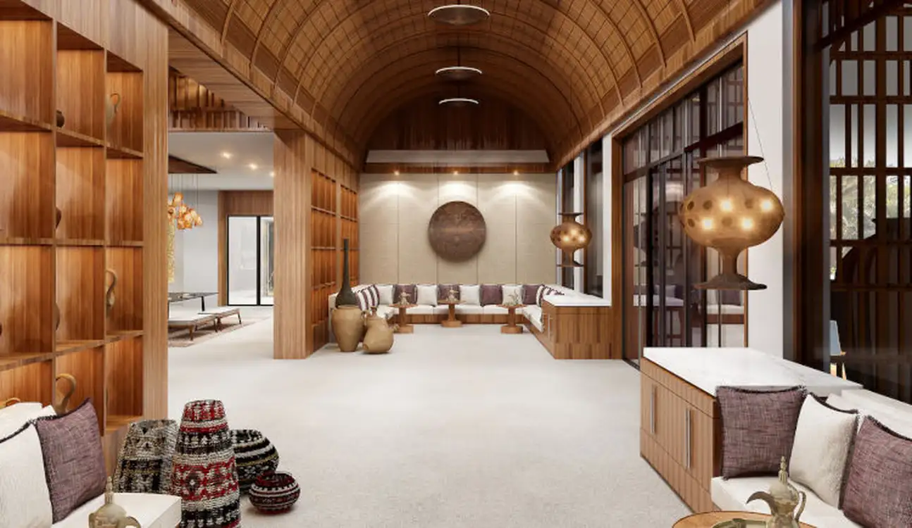 Il a été conçu pour se fondre dans son environnement naturel et puiser dans ses racines omanaises. Des touches traditionnelles telles que des fontaines, falaj, des couloirs de style omanais ainsi que des œuvres- d’art parsèment le décor.