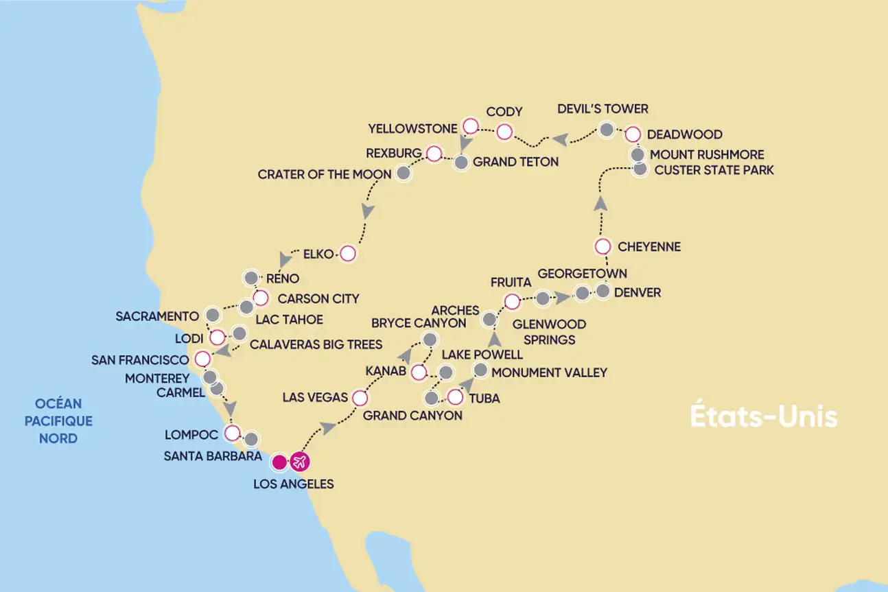 Ci-dessous le programme détaillé de votre circuit dans l’ouest américain.