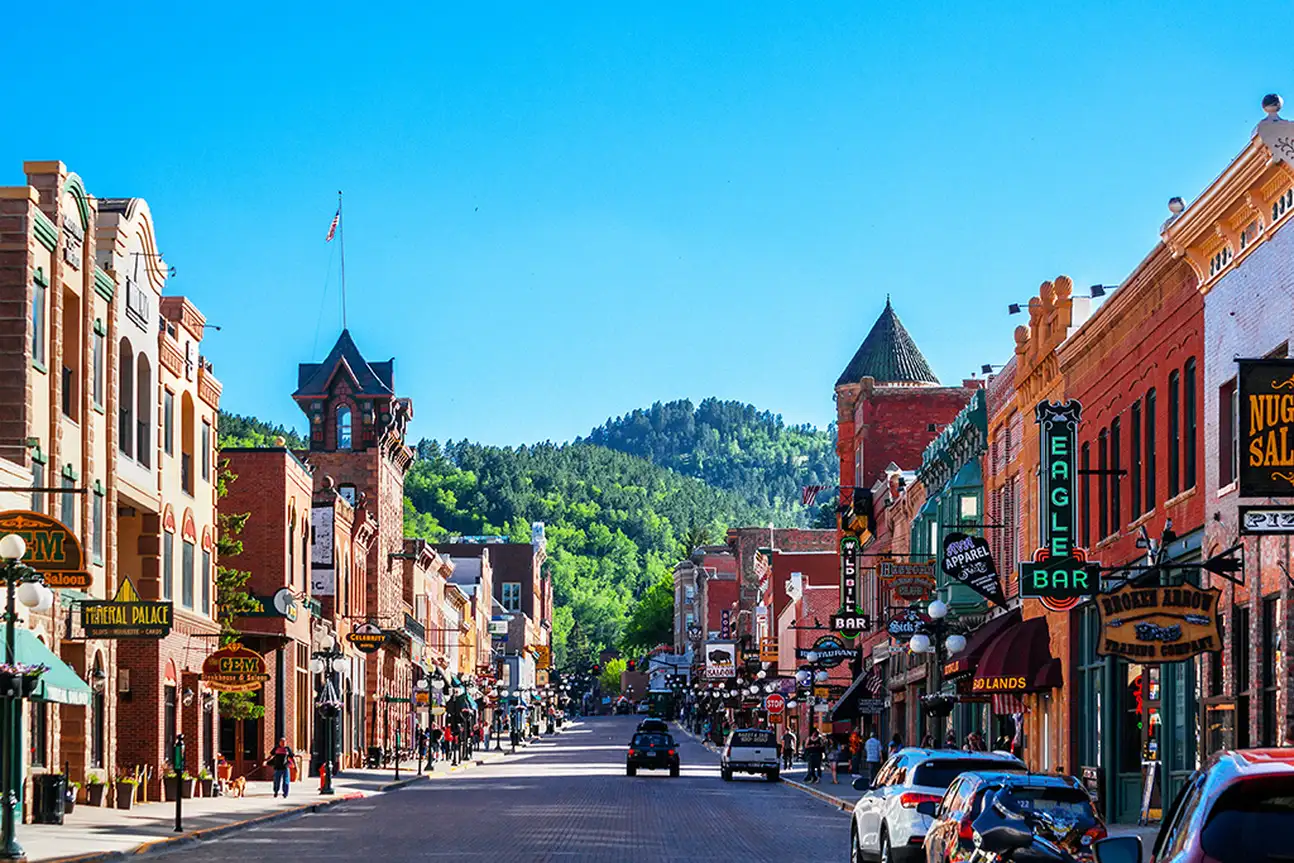 Petit-déjeuner. Route vers le Dakota du Sud. Vous traverserez le parc d'Etat de Custer qui couvre des montagnes spectaculaires et possède une faune abondante et variée : antilopes, cerfs, mouflons Bighorn, chèvres de montagnes, ânes et dindes sauvages se promènent librement dans le parc. Puis visite du Mount Rushmore, où sont sculptés dans le granit les gigantesques bustes de 4 présidents : Washington, Jefferson, Lincoln et Roosevelt. Déjeuner au cours des visites. Poursuite vers Deadwood, la ville de la ruée vers l'or, qui a gardé ses vieux bâtiments du début du siècle. Elle garde le souvenir de quelques familles de bandits tels Calamity Jane, Wyatt Earp, Doc Holiday et Wild Bill Hickok. Dîner libre. Nuit au First Gold Gaming Resort 3* ou similaire.
