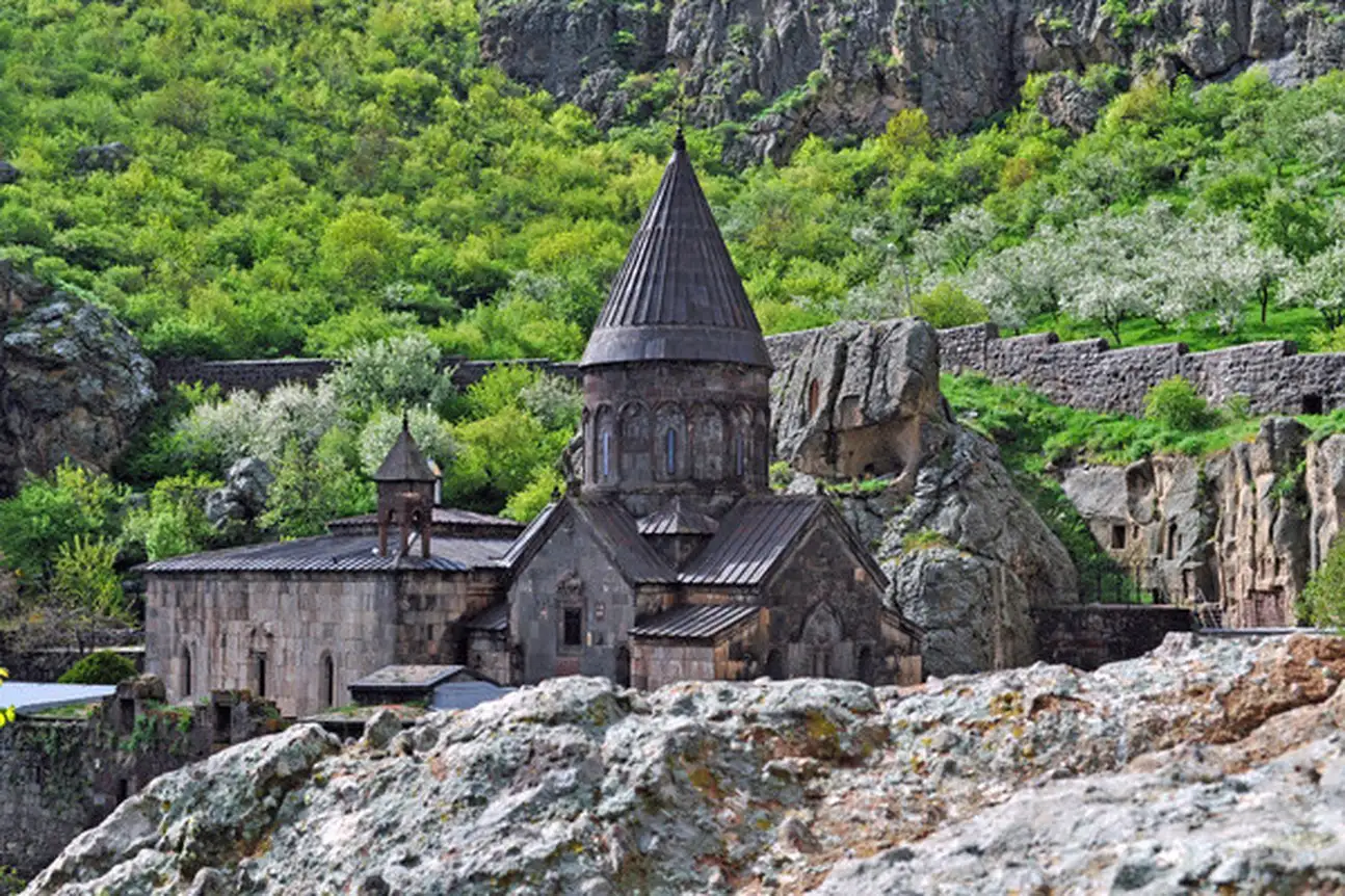 Après le petit-déjeuner, route vers le monastère de Geghard. Ce monastère, inscrit au patrimoine mondial de l'UNESCO date des 12ème et 13ème siècles. Il est en partie taillé dans la roche. La sculpture dans la roche est extraordinaire. Retour dans le village de Garni et visite de l'unique temple de l'époque païen qui a été conservé sur les territoires de l'Arménie et du Caucase. A l'époque préchrétienne, l'Arménie abondait de temple de type gréco-romain pour glorifier les Dieux du panthéon païen arménien. Tous les temples ont été détruits par les premiers chrétiens et remplacés par des chapelles, églises, monastères chrétiens. Le temple de Garni datant du 1er siècle. dédié au culte de Mihr (Mitra), Dieu du soleil de la lune, est une heureuse exception à ces destructions grâce aux efforts de la princesse Khosrovanouche, la soeur du roi de l'époque. Retour à Erévan. Déjeuner en route. Visite du Matenadaran, le musée des manuscrits. Ce musée, institut de recherche, renferme une des plus riches collections de manuscrits et de livres imprimés anciens au monde. Découverte des arts du livre arméniens au travers des manuscrits enluminés. La collection compte non seulement des livres et des textes arméniens mais aussi grecs, latins, hébraïque, assyrien etc.