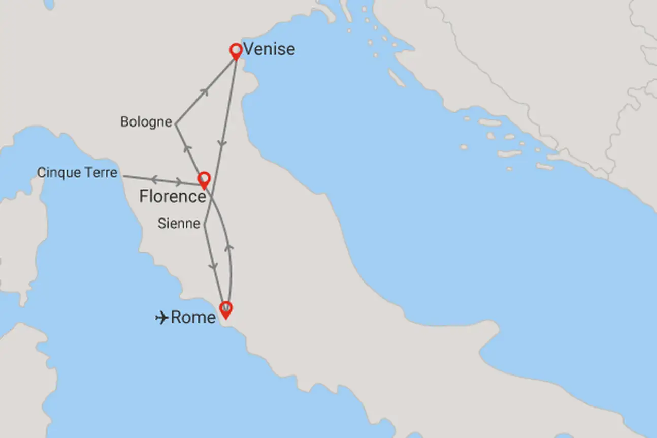 Petit-déjeuner à l'hôtel et départ direction les Cinque Terre. Arrivée en bus à la Spezia où vous prendrez le train direction Vernazza, l'une des cinq "perles" des Cinque Terre. Vous pourrez profiter d'un temps libre pour découvrir ce magnifique village. La deuxième étape sera Monterosso, avec sa célèbre plage, sa promenade en bord de mer et la colline San Cristo. Déjeuner libre. La dernière étape avant le retour à la Spezia sera Riomaggiore. Vous profiterez d'un temps libre pour vous promener dans les rues étroites de la ville. Retour à la Spezia en train et retour à Florence. Dîner libre et nuit à l'hôtel.
