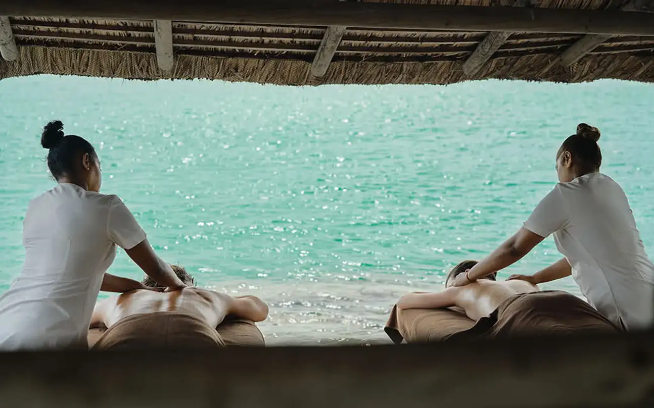A l'extrémité, la péninsule avec sa piscine à débordement, s'avance dans le lagon turquoise et offre une vue spectaculaire sur les îles du nord ; une réelle invitation à la baignade, idéal pour ceux en quête d'une atmosphère balnéaire tendance.