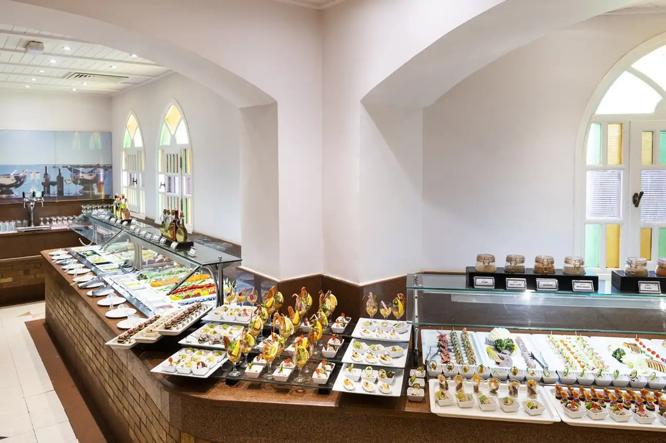 Vous prendrez vos repas au restaurant principal avec un service sous forme de buffet (port du pantalon demandé pour les dîners).