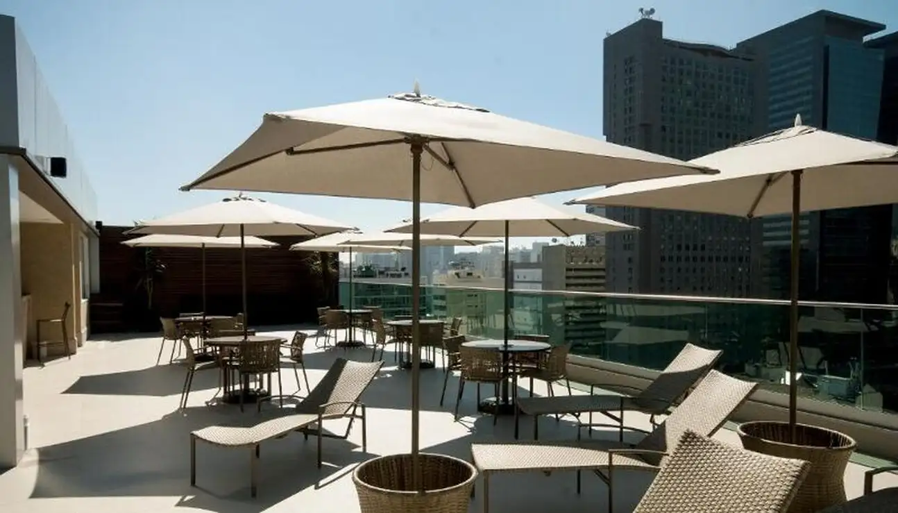 Pour une expérience unique, des boissons très brésiliennes sont servies au bar de la piscine, sur le toit, avec la belle vue sur le centre financier de Rio, le quartier historique de Santa Teresa et même le Christ Rédempteur.