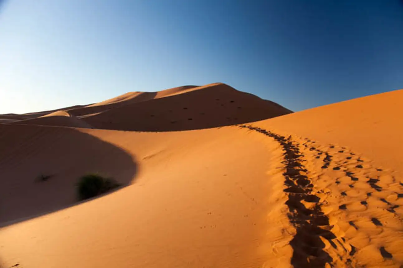Après une visite guidée de 2 heures, profitez d'un déjeuner libre. Dans l'après-midi, continuez votre voyage vers les dunes de Merzouga, l'une des sept merveilles naturelles du Maroc. Les dunes de Merzouga, qui peuvent atteindre 150 mètres de hauteur, offrent un spectacle unique au coucher du soleil. Au coucher du soleil, montez à dos de dromadaire pour rejoindre votre bivouac. Le soir, dîner traditionnel marocain et soirée musicale avec les Berbères. Nuit en tente berbère.