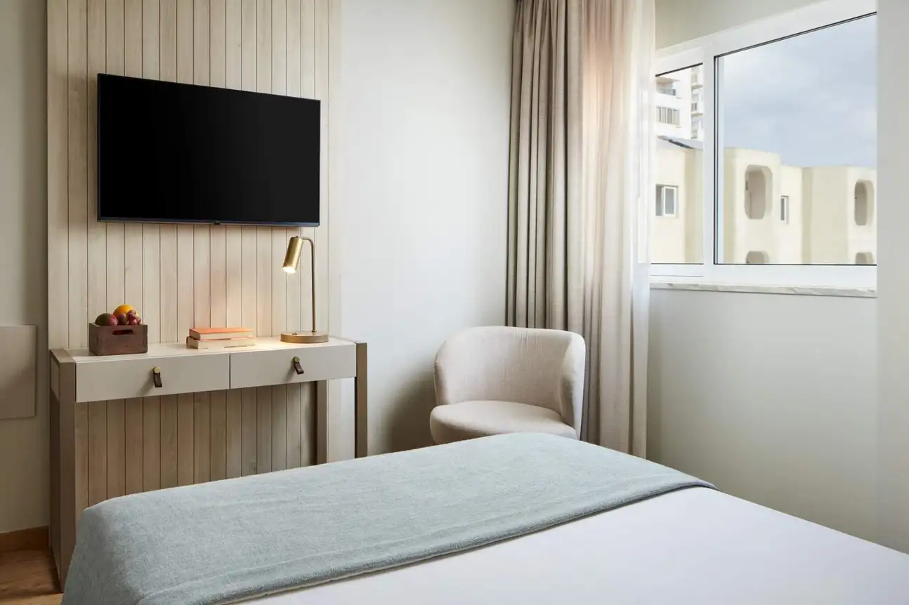 Entièrement rénové, l'hôtel dispose de 154 chambres modernes, toutes avec un design élégant, des couleurs et du mobilier moderne combiné avec un sol en bois de chêne. Les chambres doubles vues sur les terres sont équipées de la climatisation, TV LCD, Internet sans fil, téléphone direct, coffre-fort et salle de bains privative avec des équipements et sèche-cheveux.