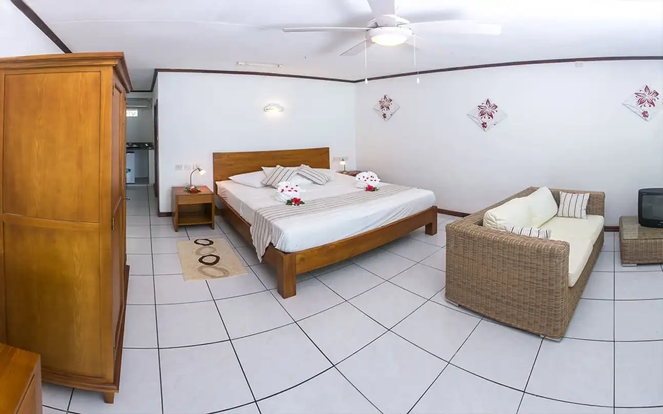 Équipements : Air conditionné, mini réfrigérérateur, télévion par câble, slalle de bain avec douche / WC, cabine de douche séparée, coffre-fort, Wi-Fi gratuit, cafetière, théière, sèche-cheveux, ventiateur de plafond