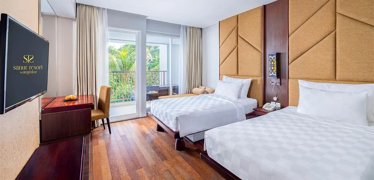 Le Sanur Resort Watujimbar 4* compte de 306 chambres et suites réparties sur 4 étages. Les chambre Deluxe et Grand Deluxe vous offrent une retraite élégante avec une vue rafraîchissante sur la piscine depuis votre balcon privé aménagé.