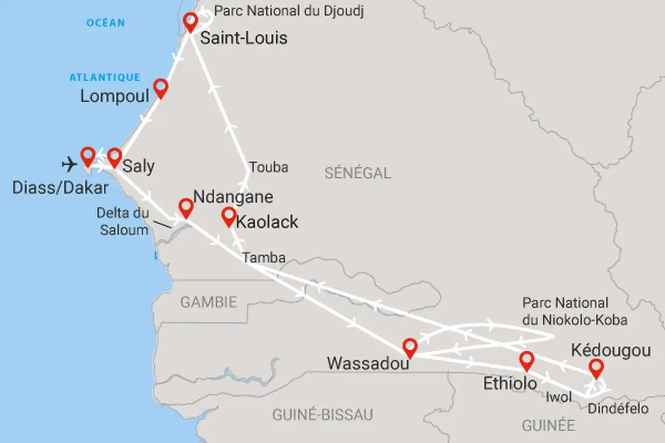 - Afin de vous permettre de voir l'essentiel du Sénégal, ce circuit inclut de nombreuses étapes. Les distances parcourues entre chaque étape sont importantes. Le rythme de ce circuit est soutenu.