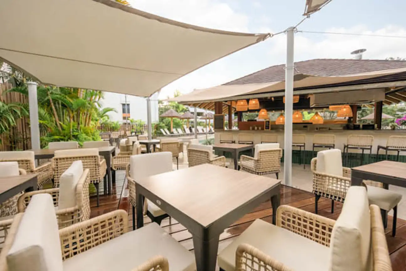 - Pour vos déjeuners, vous aurez la possibilité de les prendre au sein du Pool bar Le Palm Bar, situé en terrasse, à proximité de la piscine.