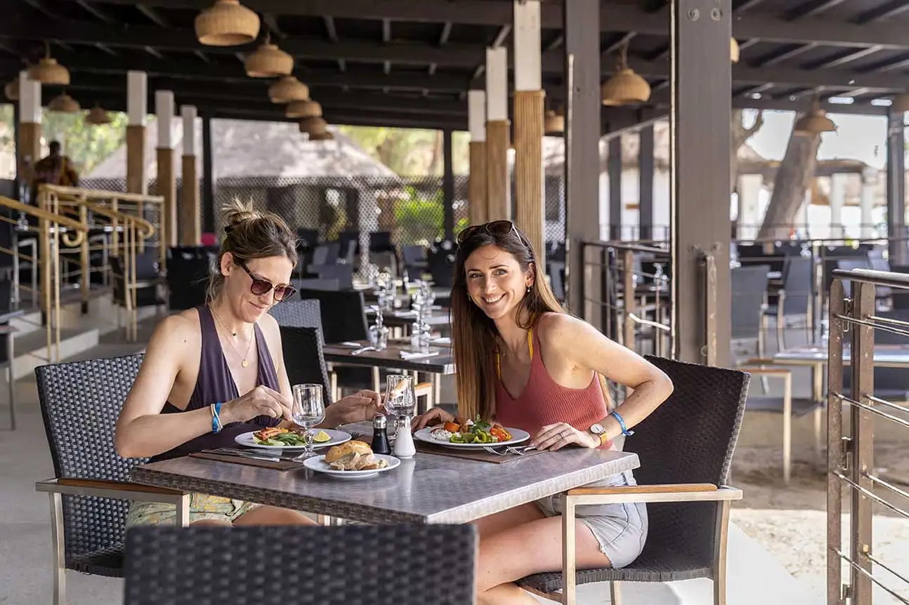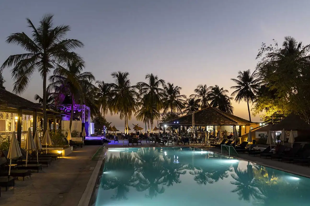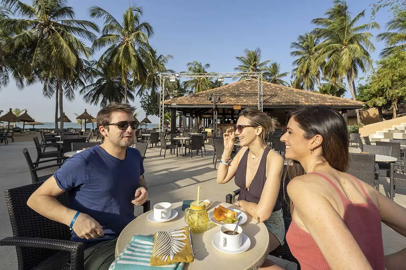 • 2 bars le Balafon (Filaos) et le Niokolo (Saly) : Boissons locales à volonté de 10 h à 23 h : vin, bière, jus de fruits, soda, café, thé, eau… alcool local, gin, vodka, whisky, apéritif anisé, vermouth, 2 choix de cocktail du jour à volonté.. Les boissons sont payantes de 23 h à minuit au bar terrasse.