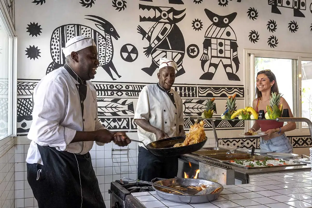 • Restaurant le Saloum sur la partie Saly, sous forme de buffet varié à volonté : cuisine internationale et locale, buffet à thème…