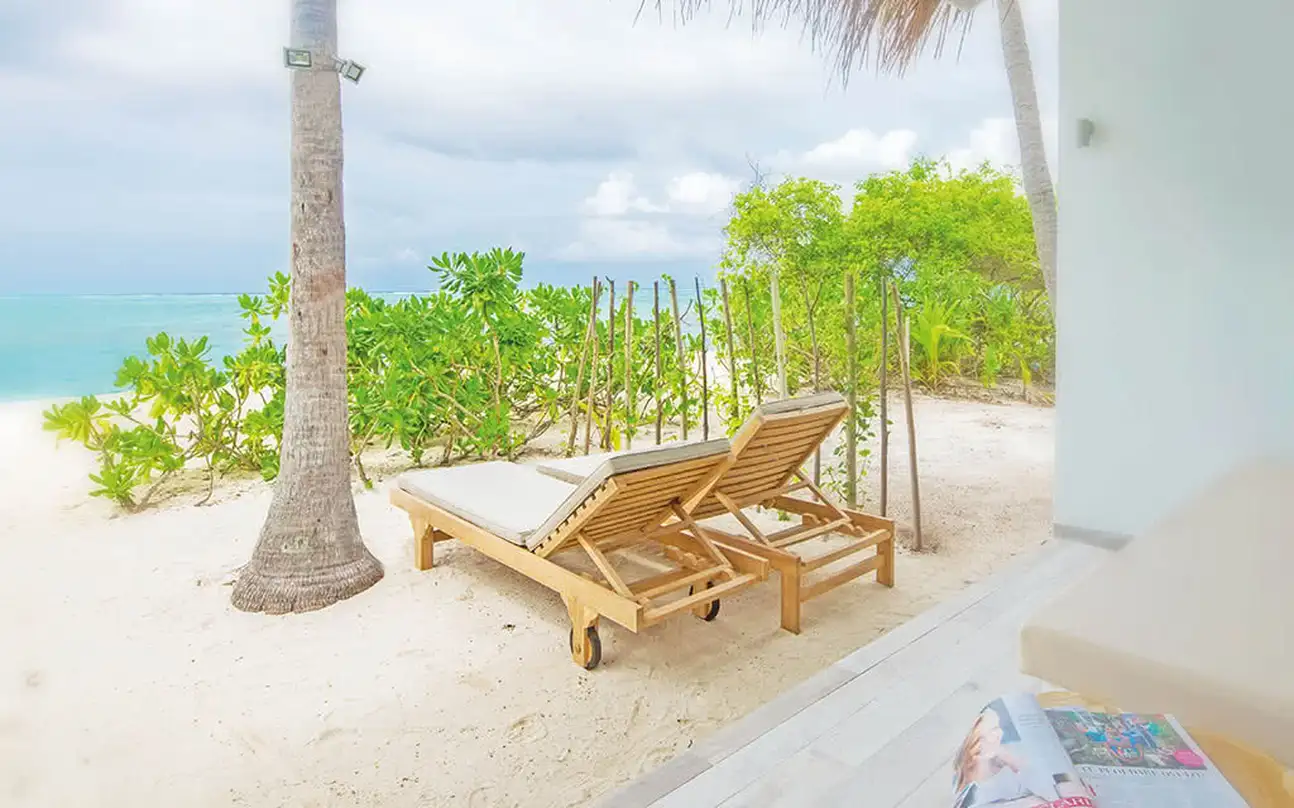 Les spacieuses villas de plage de 50m² de l'hôtel Cocoon allient la beauté naturelle des Maldives au meilleur du design italien. Chaque villa comprend un espace de bain avec douche extérieure, une chambre principale avec un lit king-size "flottant".