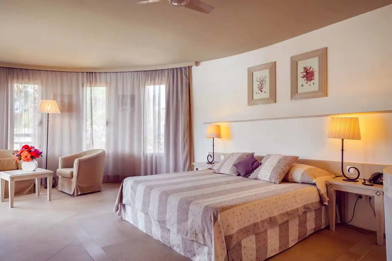 - Junior Suite : env. 33 m², pour 2-3 pers., chambre et coin salon, vue jardin. Rénovée ou côté mer en option. 3è personne sur lit simple ou canapé-lit.